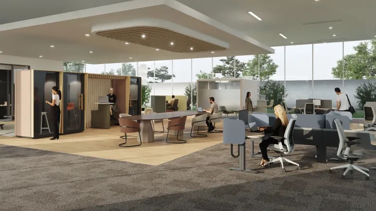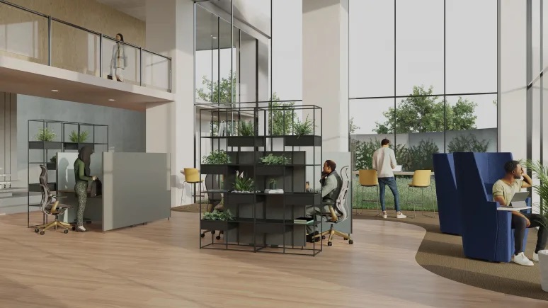 The approach borrows from how cities function, organizing the workplace into “districts” such as City Centers, Neighborhoods, and Urban Parks. Each district is designed with a distinct purpose, whether it’s fostering collaboration or providing space for individual focus, mirroring the diversity and vibrancy of real communities.