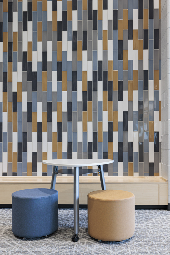 The team worked to create a sense of consistency throughout the building, while still allowing each space to serve its purpose. Furniture and layouts were selected to support a range of activities and adapt as needed over time. The spaces needed to feel connected but also support specific functions. That meant selecting versatile furniture and planning layouts that allowed for both structure and flexibility. The result was a thoughtful mix of spaces that support different modes of learning and engagement: