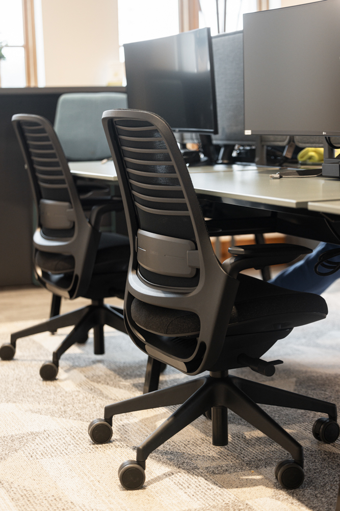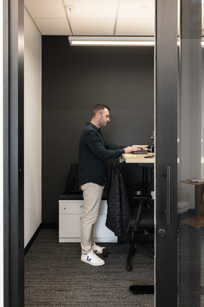 Custer’s team provided nearly all of the furniture the new location, ensuring the layout supported flexibility for individuals and teams alike. The only exception was the desks in the private offices, which were furnished by Bold+. Together, these pieces created a diverse mix of settings that make the co-working experience comfortable, functional, and inspiring.