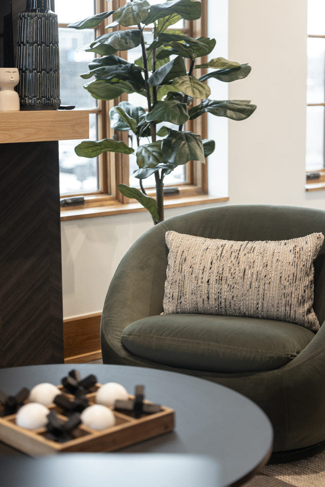 - Accessories such as rugs, pillows, artwork, plants, and acoustic elements that add character and texture throughout the space