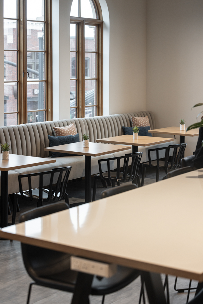 This is further supported by shared amenities such as work tools, individual task lighting, access to natural light, biophilia, excellent coffee and plenty of healthy snacks.
